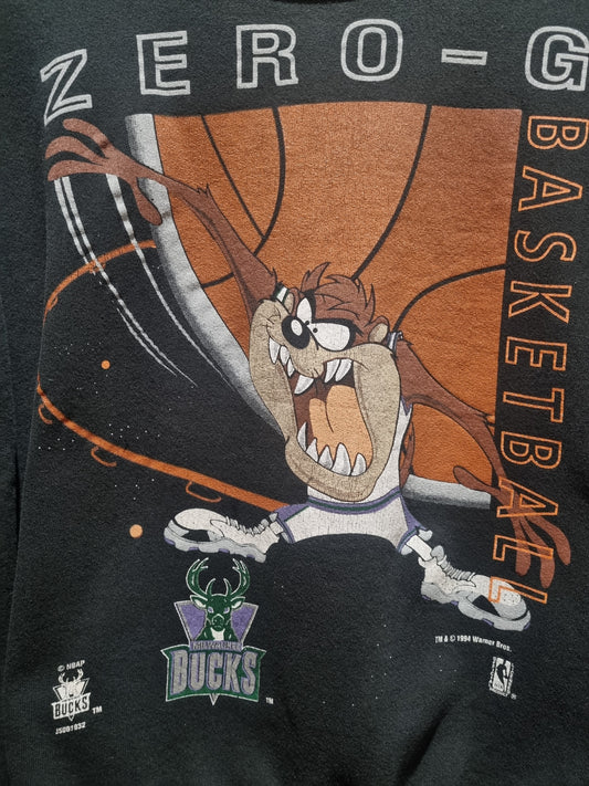 True Vintage Rare Looney Tunes 1994 Taz Milwaukee Bucks Sweater Small
