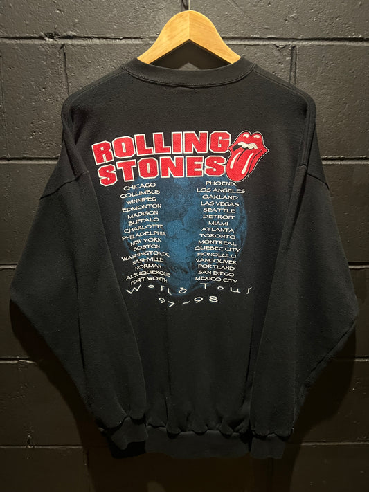 Vintage 1997 Rolling Stones 1997-1998 World Tour Sweatshirt Crewneck Grey Made In USA Pullover Jumper Size XL