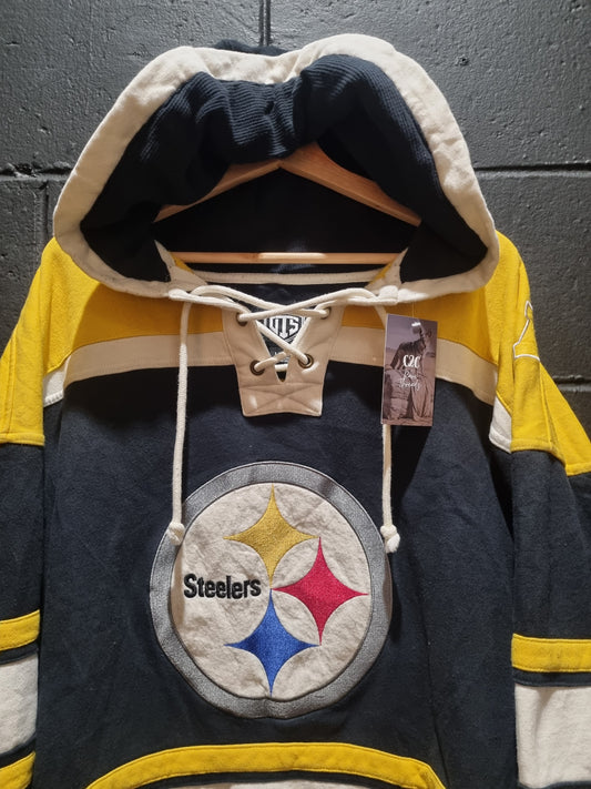Pittsburgh Steelers Hockey Style Hoodie Large
