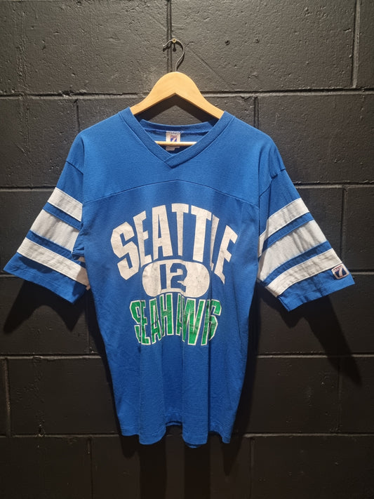 Seattle Seahawks V-Line Jersey Tee Logo7 Made in USA Large