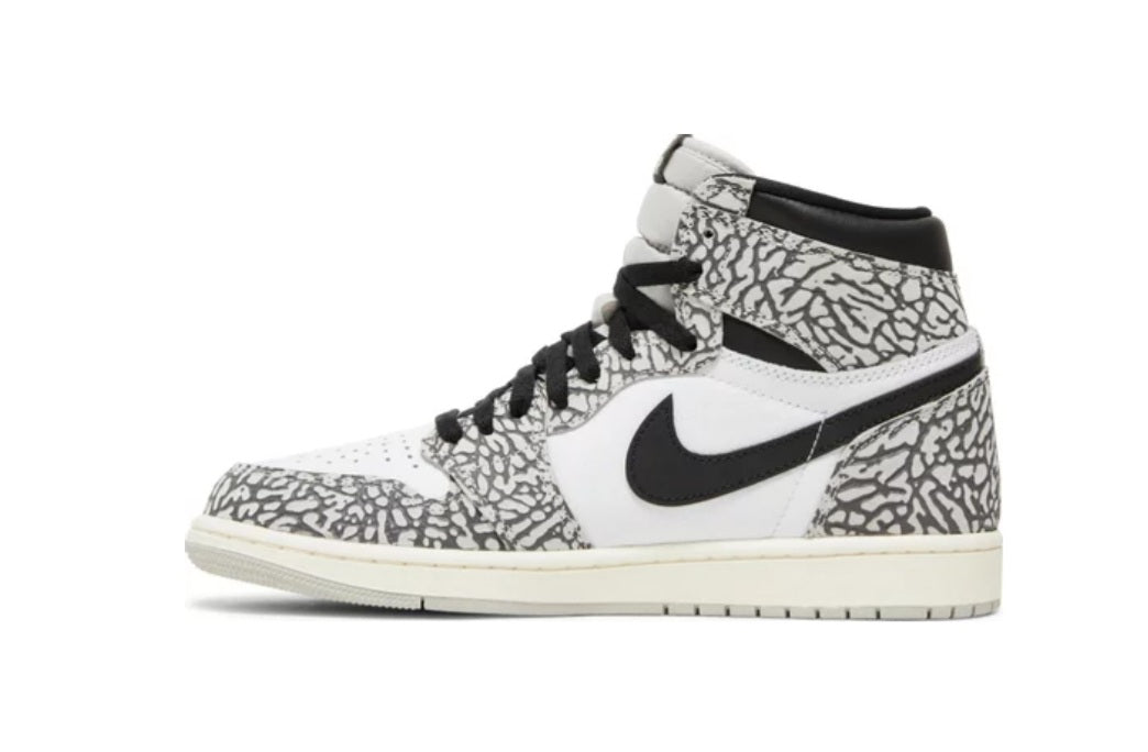A timeless classic, reimagined, the Air Jordan 1 Retro High OG "White Cement" is now here! Featuring a unique white cement elephant print, classic Jordan 1 features and black and white leather elements, this sneaker is the perfect combination of style and comfort! The muslin coloured outsole adds a vintage feel to complete the perfect look. Don't miss out, available now in store and online!