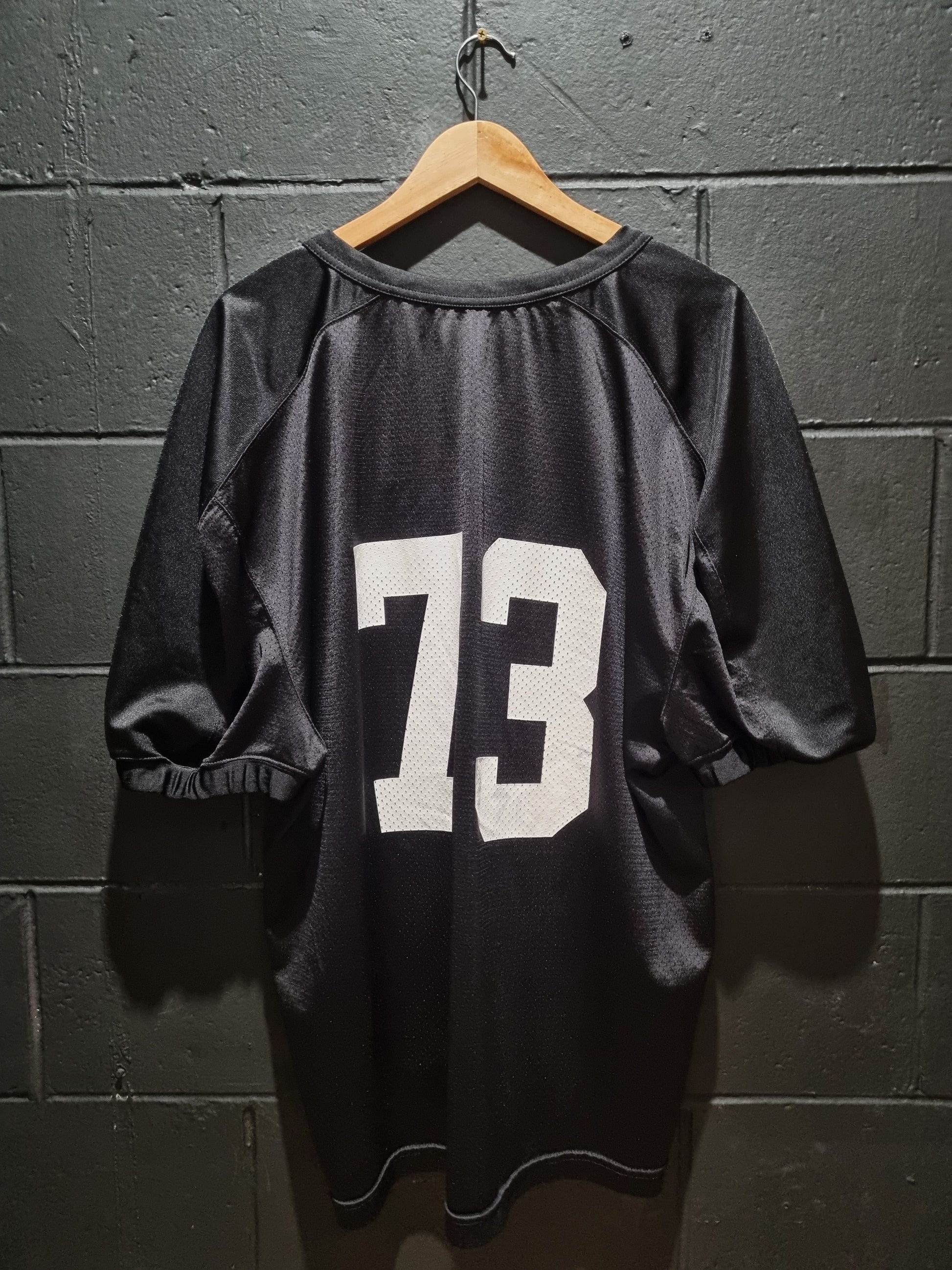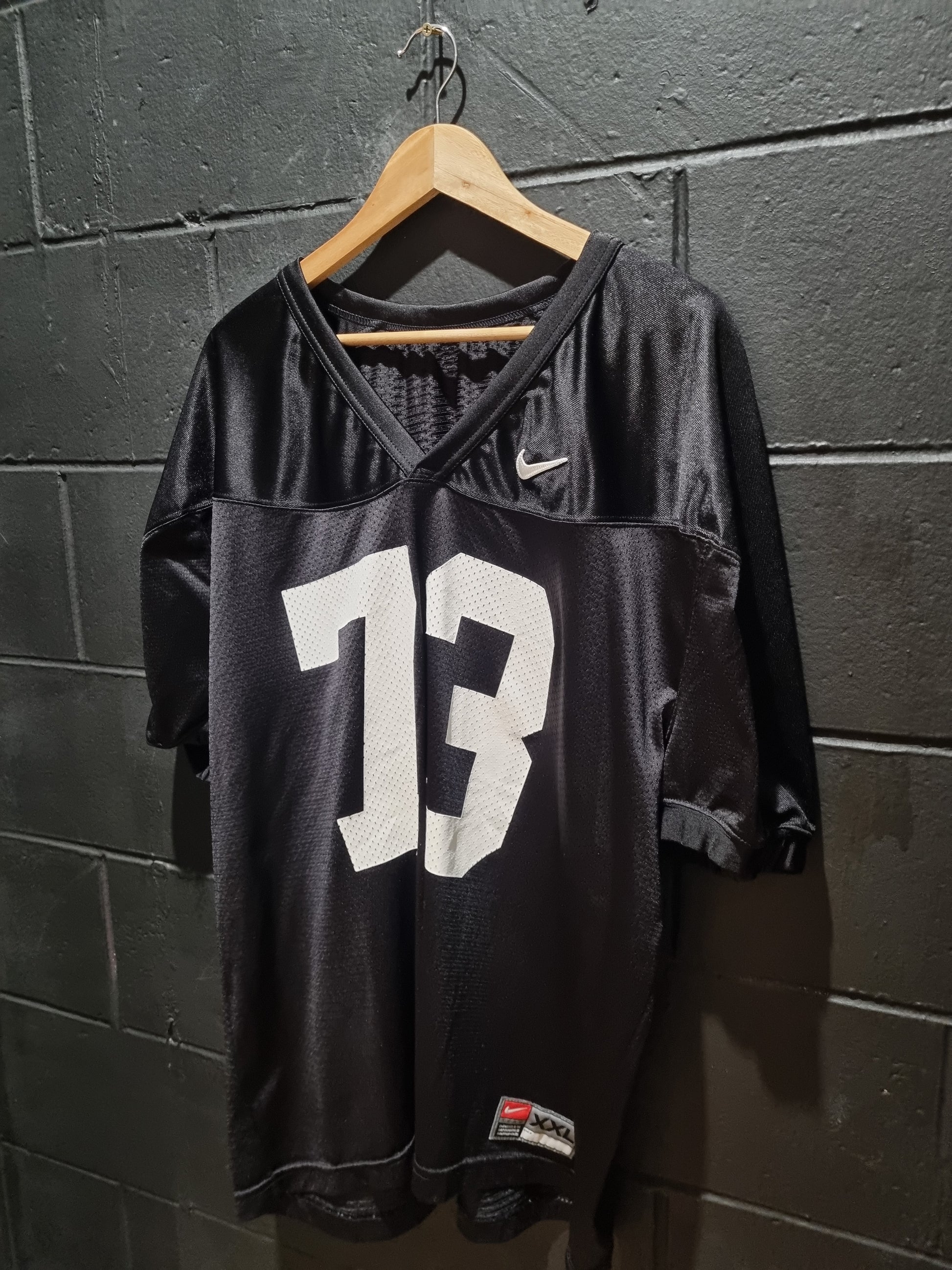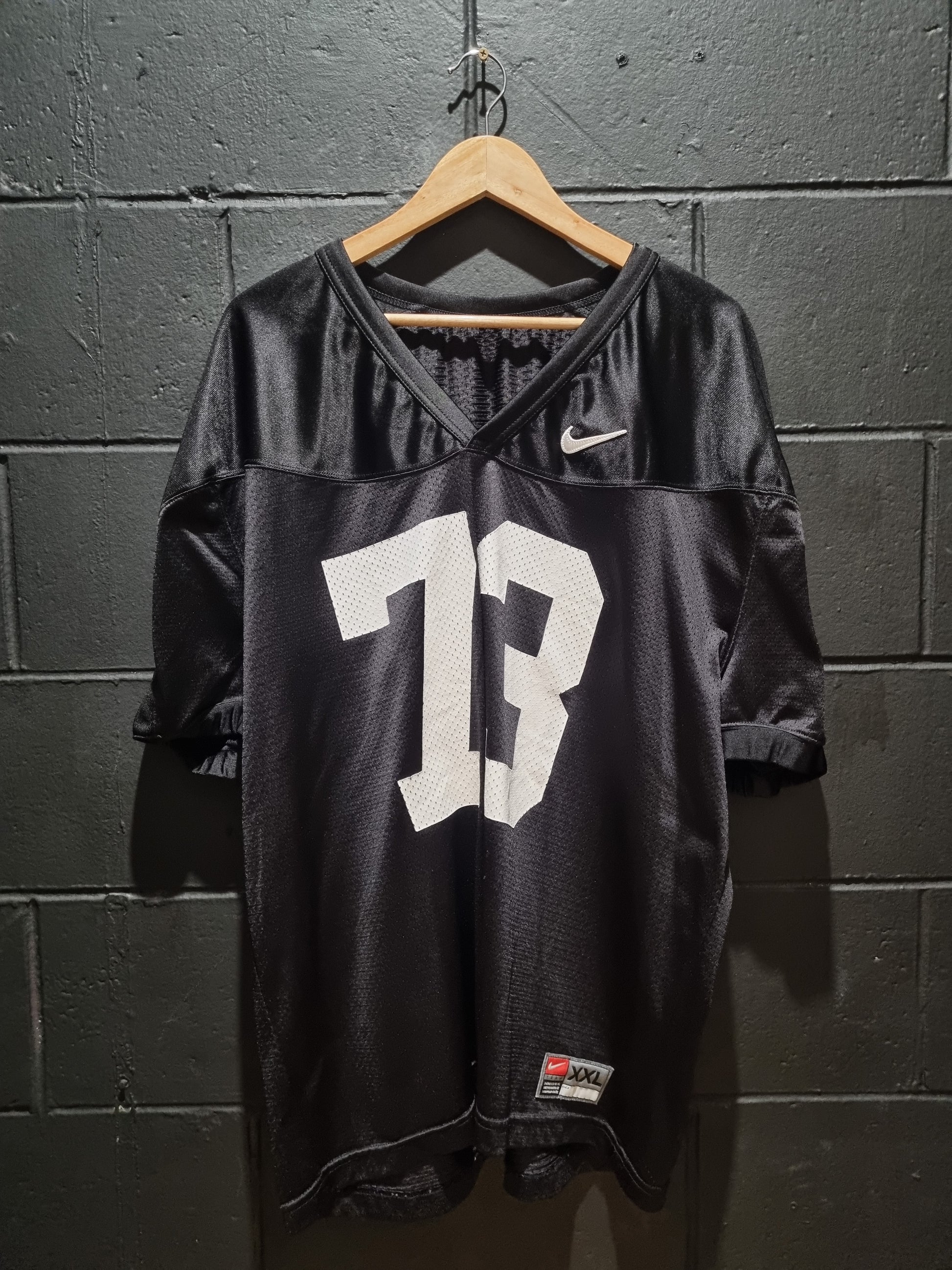 Introducing the Nike 73 Oversized Jersey XXL. Enjoy the classic black design while you work out in style. Designed for maximum comfort and performance, this jersey is a must-have for any fitness enthusiast. Upgrade your workout wardrobe today with Nike.
