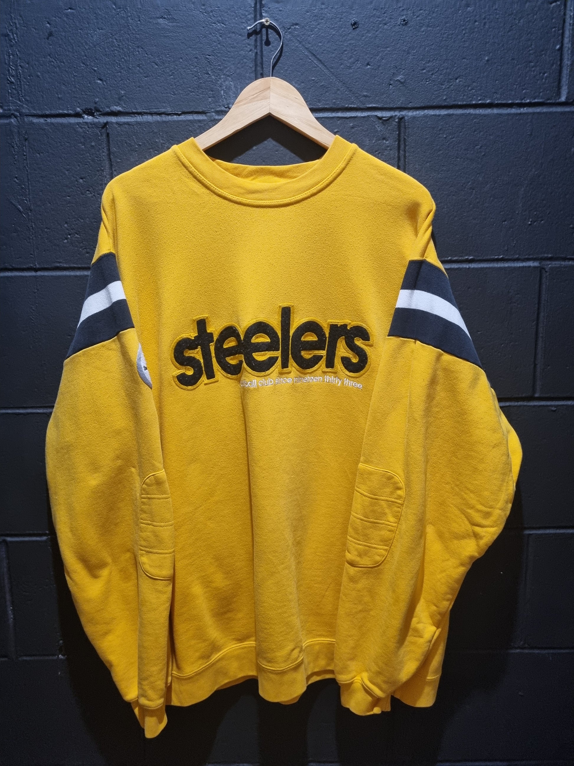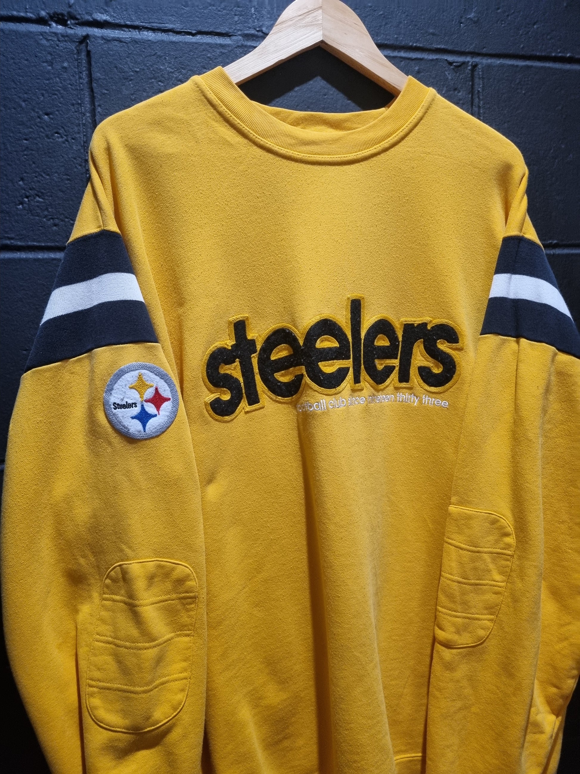 Experience the nostalgia of the Pittsburgh Steelers with the Epic throwback Gridiron classic Reebok XL. Featuring heavy sweater material and great embroidery, this football club has been a fan favorite since 1933. Show off your team pride in style and comfort.